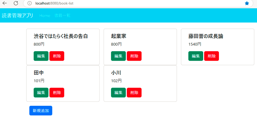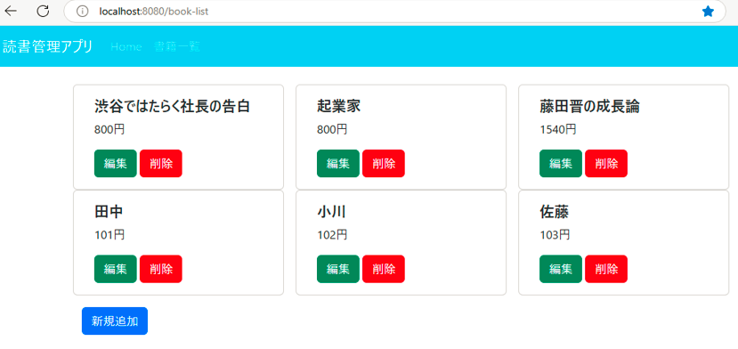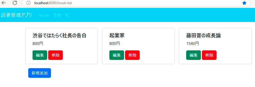 今回は、前回のような、BookRepositoryがSpringコンテナに登録されていないというエラーは起きませんでした。